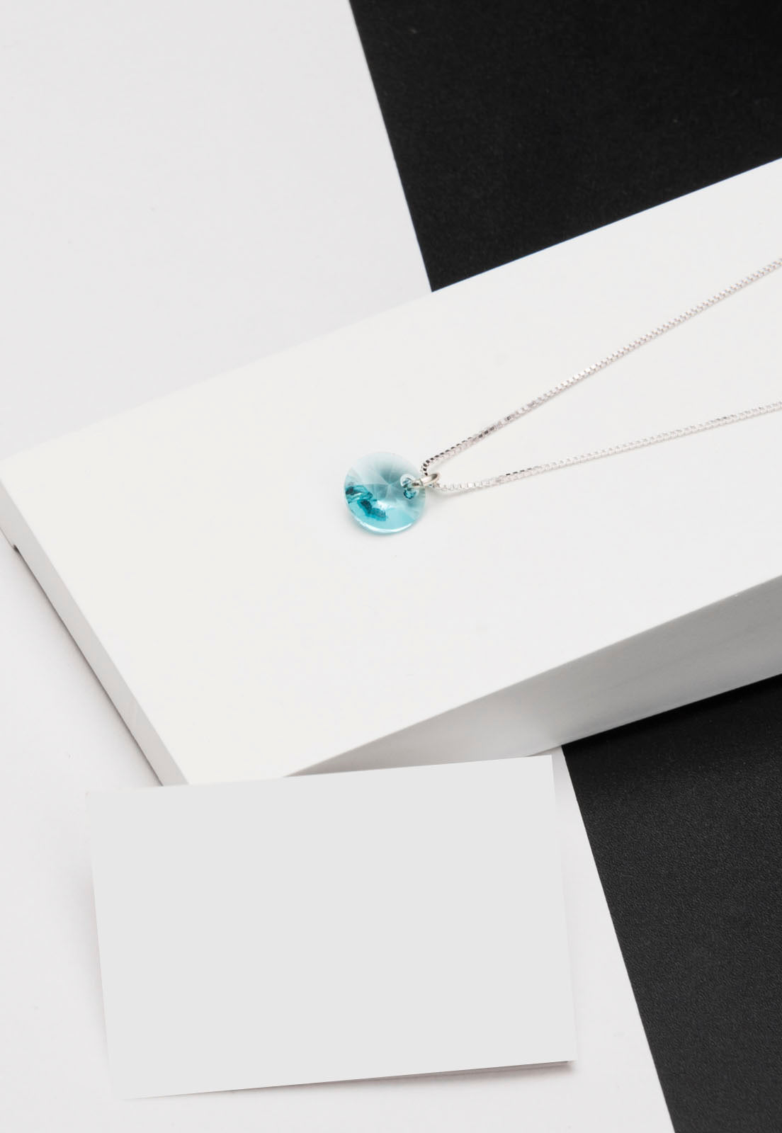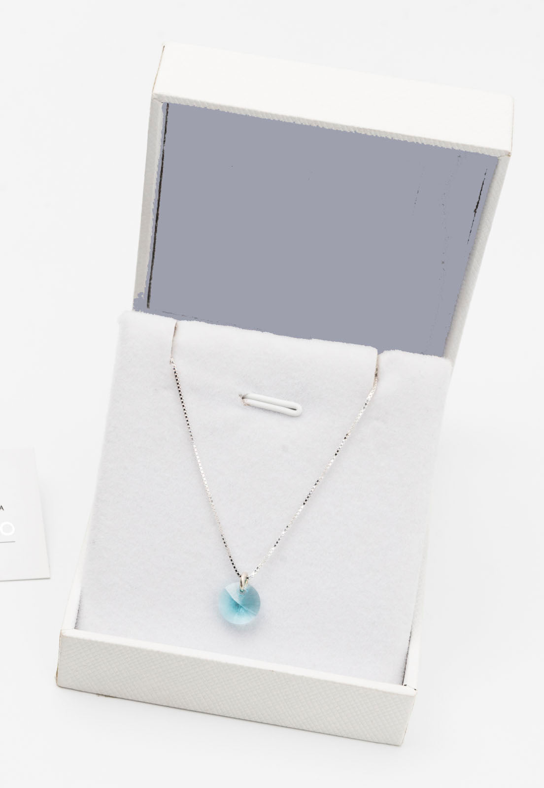 Collar Punto de Luz Plata Italiana 925 y Cristal Genuino Turqueza