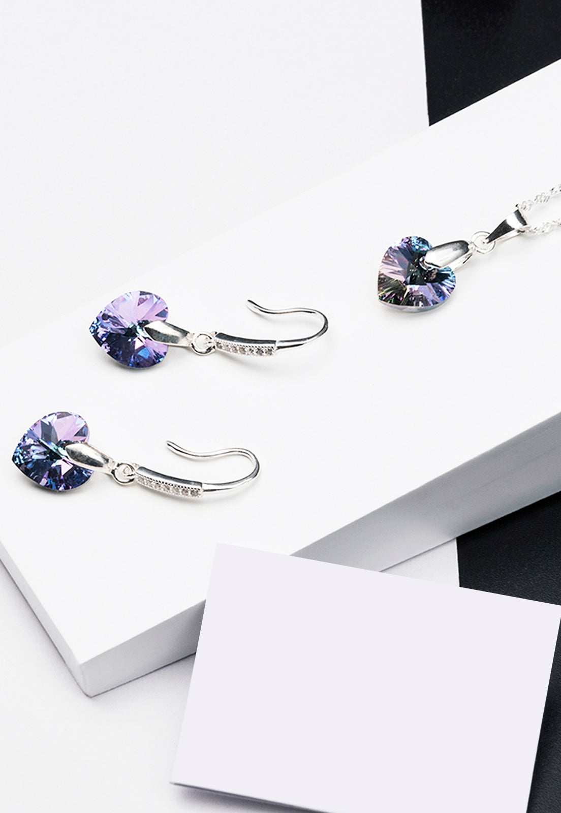 Conjunto de Plata Italiana 925 con colgante, cadena de 45 cm y aros con gancho.