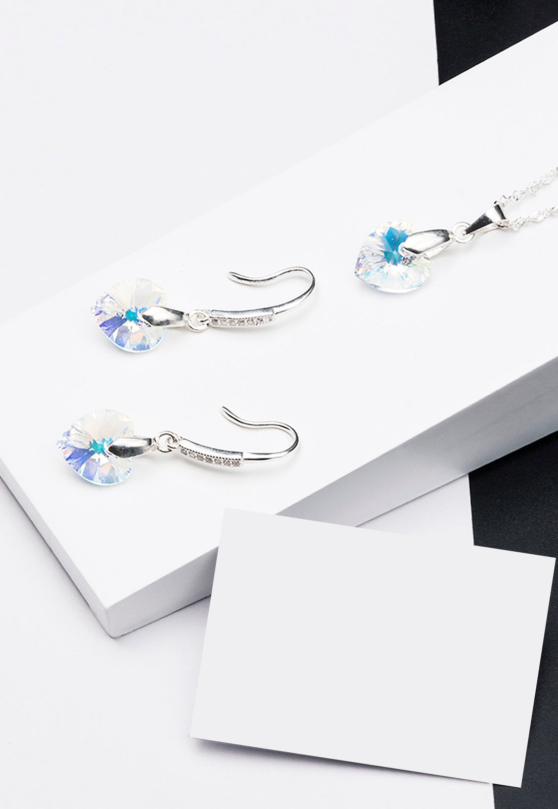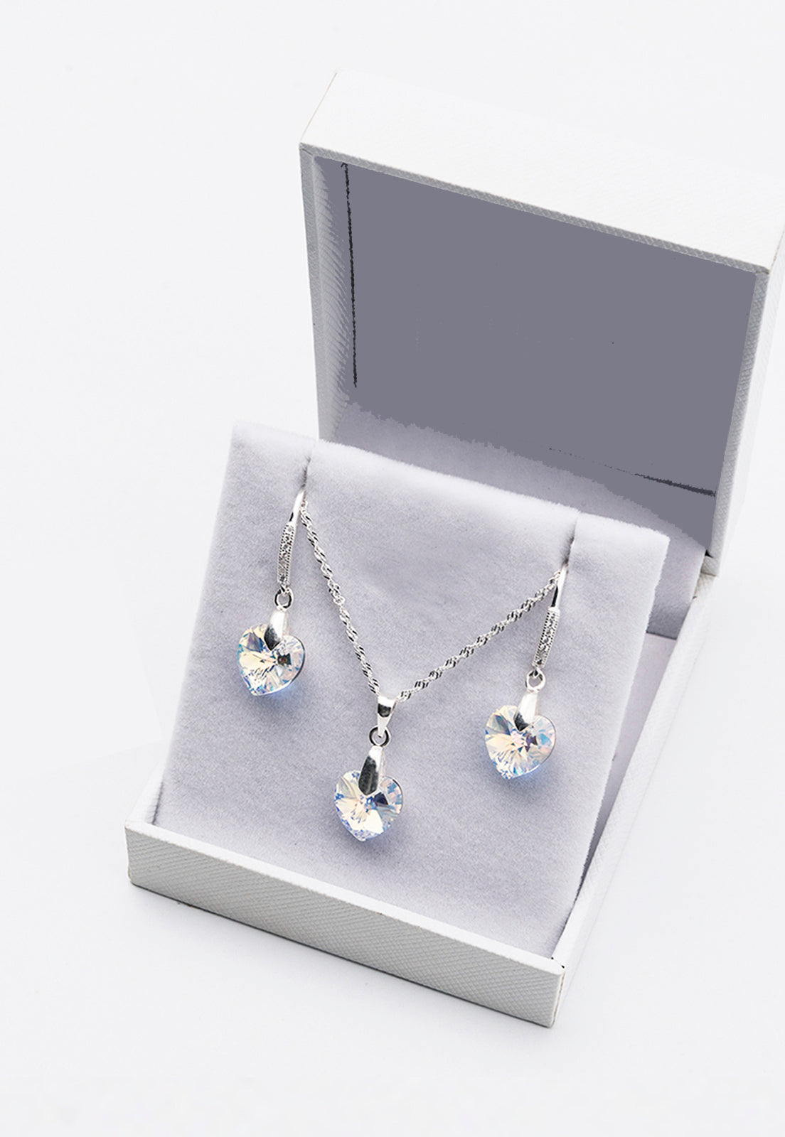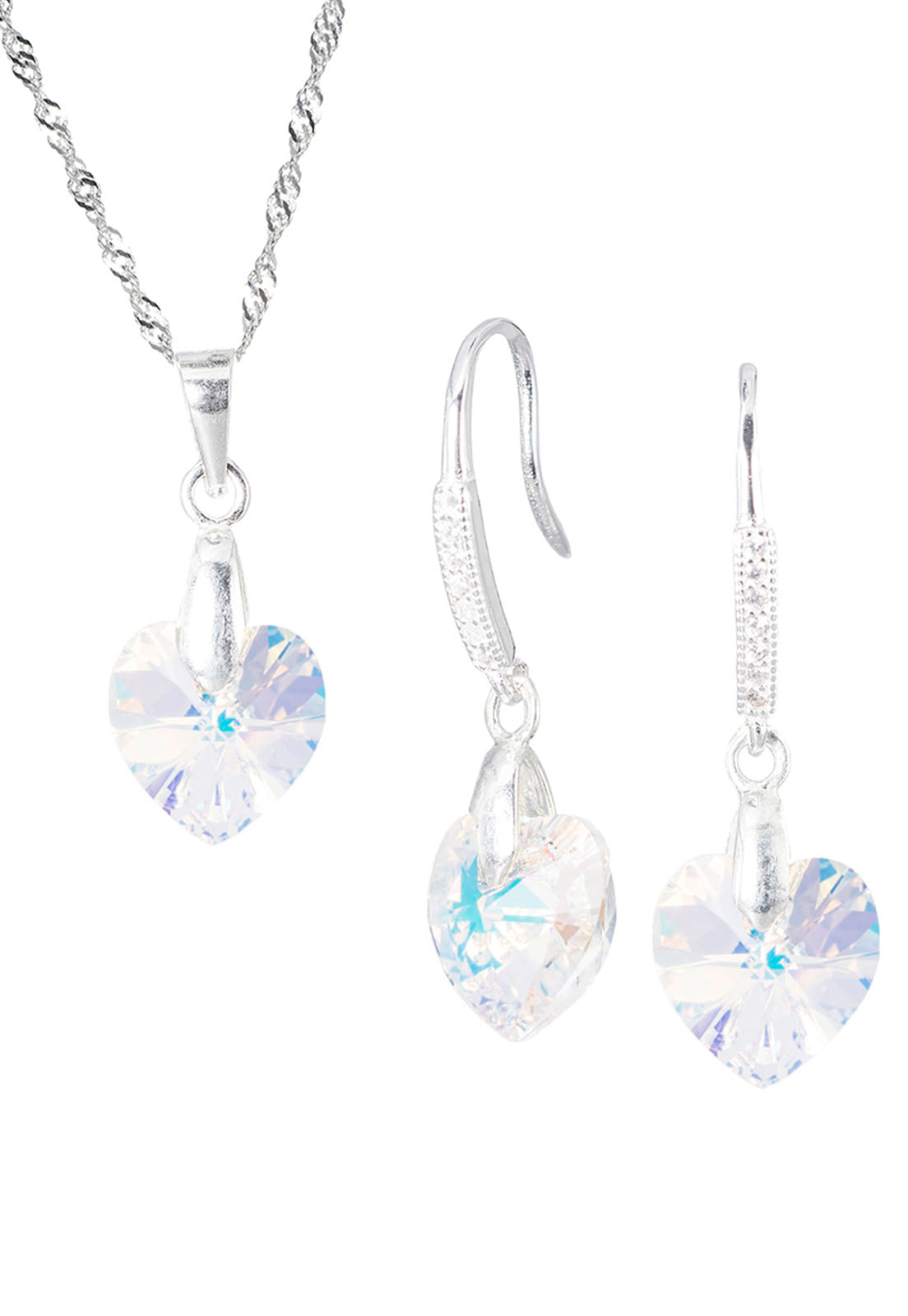 Conjunto de Plata Italiana 925 con colgante, cadena de 45 cm y aros con gancho.