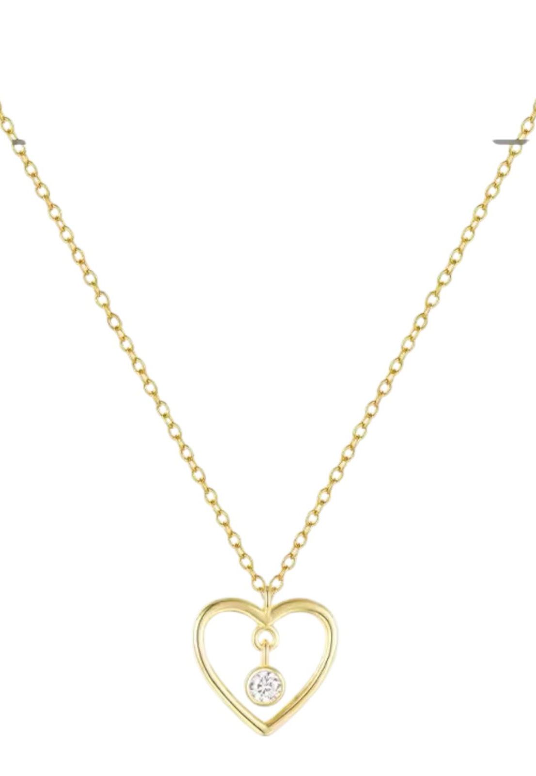 Collar de plata 925 chapada en oro 18k con diseño exclusivo de corazón y punto de luz con pequeños cristales, Esta pieza elegante combina sofisticación y delicadeza, convirtiéndose en el complemento perfecto para cualquier ocasión. La calidad de los materiales garantiza durabilidad y brillo excepcional.